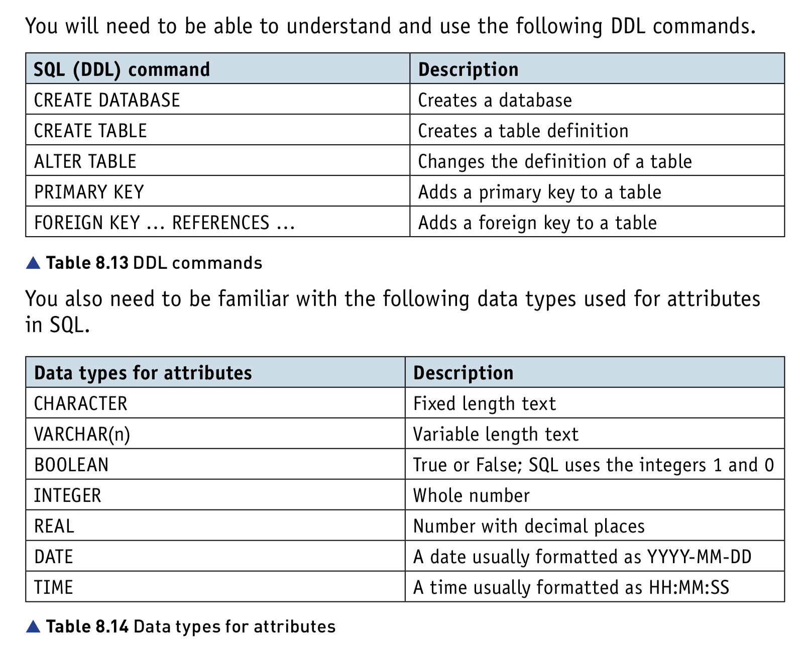 Understand given SQL DDL statements and be able to write simple SQL (DDL) statements using a sub-set of statements