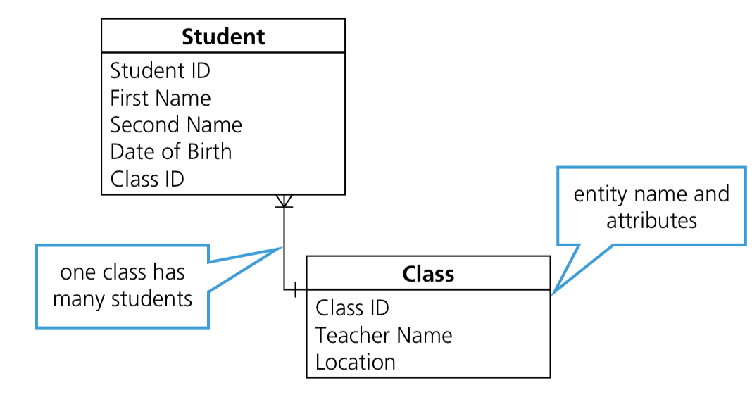 - Entity: anything that data can be stored about, e.g. a student, a teacher